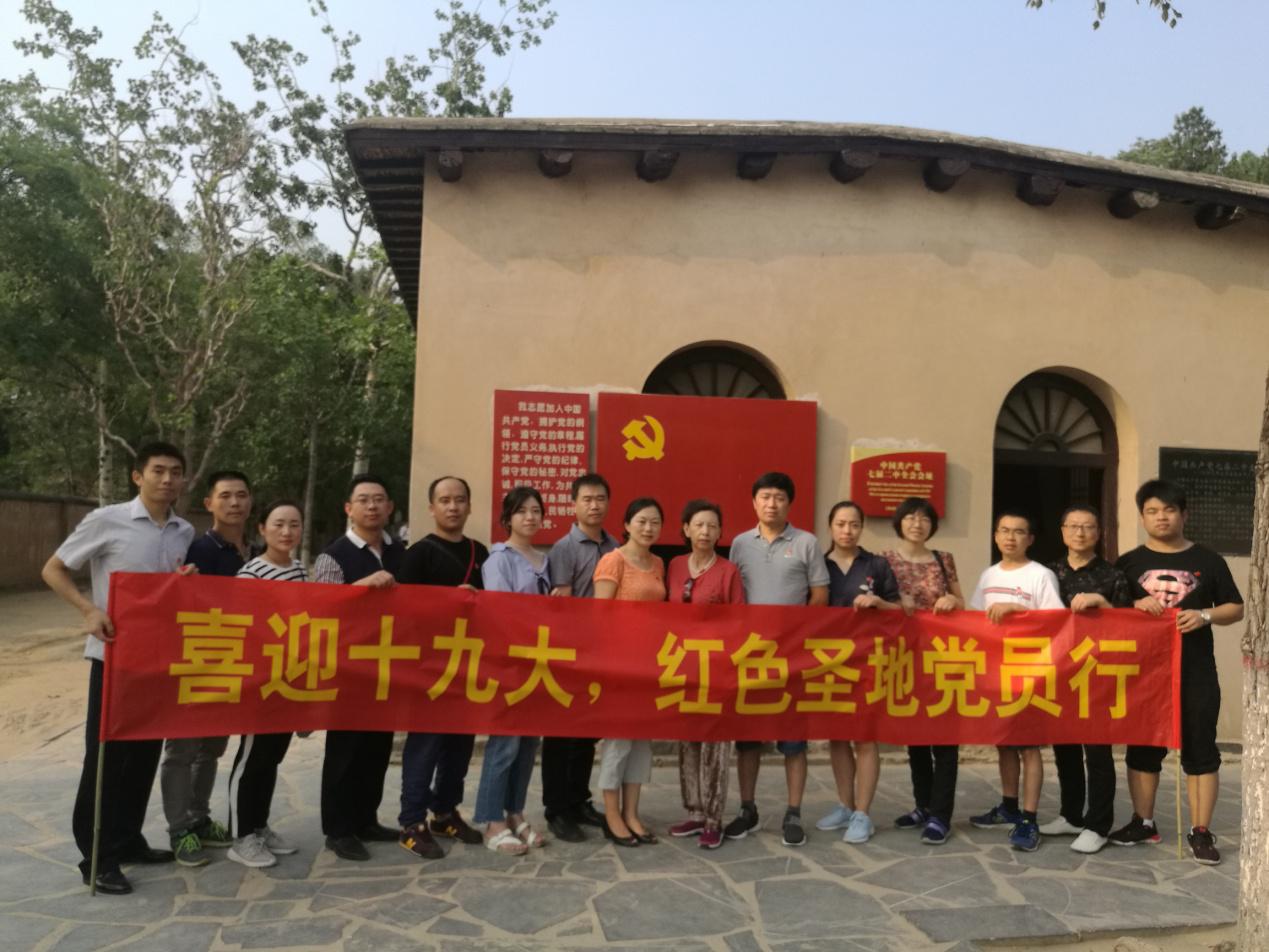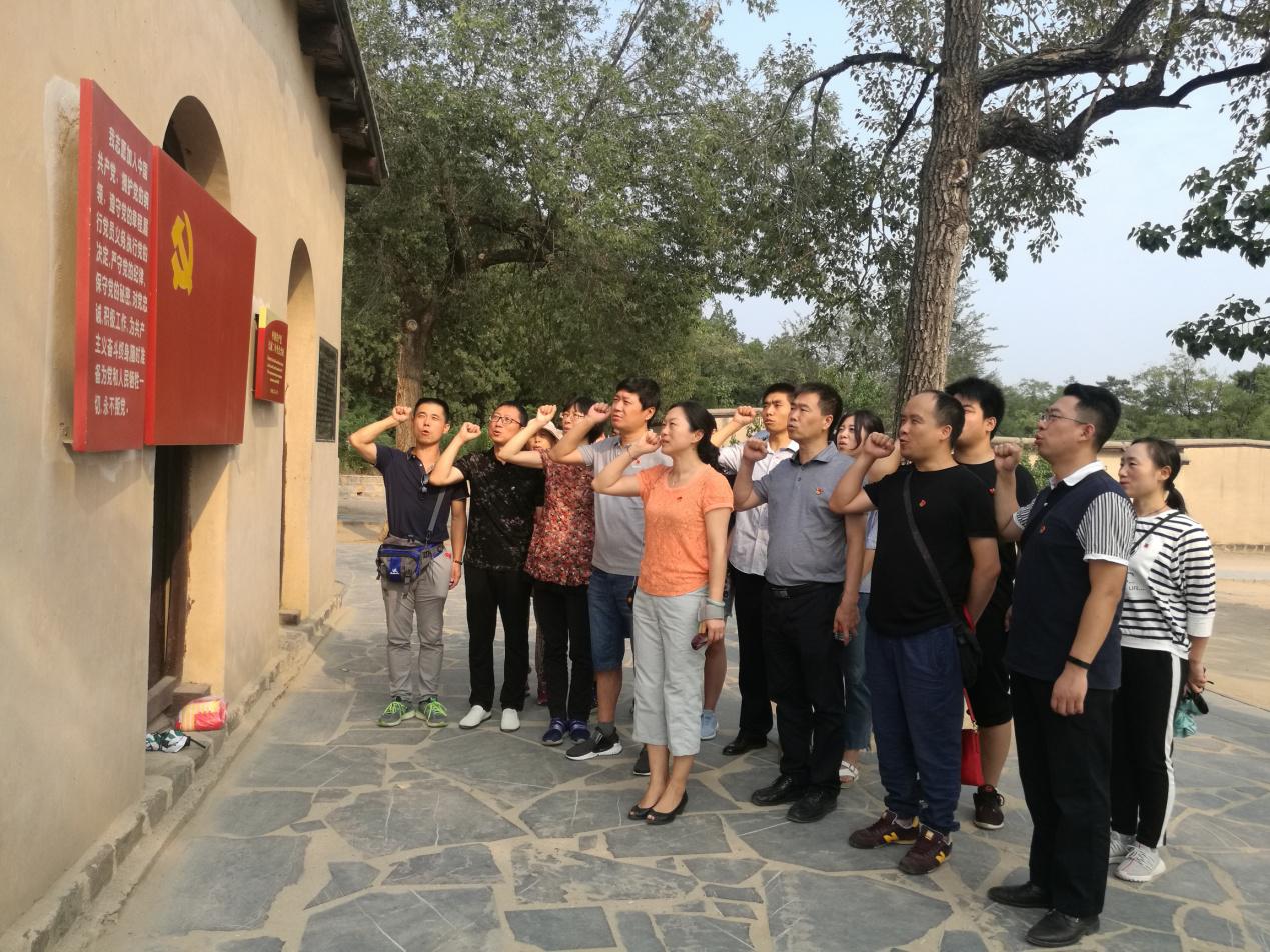 在七屆二中全會的會址前面有一面鮮紅的黨旗,黨旗旁邊還書寫著莊嚴的入黨誓詞,在大家的一致認可下,在這個特別有紀念意義的地方,我們一起重溫了入黨誓詞,激起大家回想積極要求入黨時的激情和追求,以及入黨宣誓時的莊嚴承諾和奮斗決心,增強了支部黨員的光榮感、責任感和使命感。