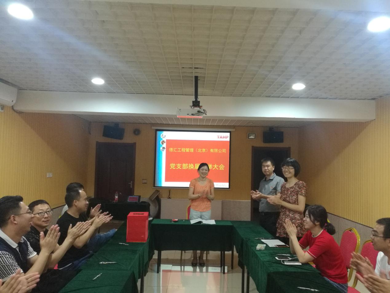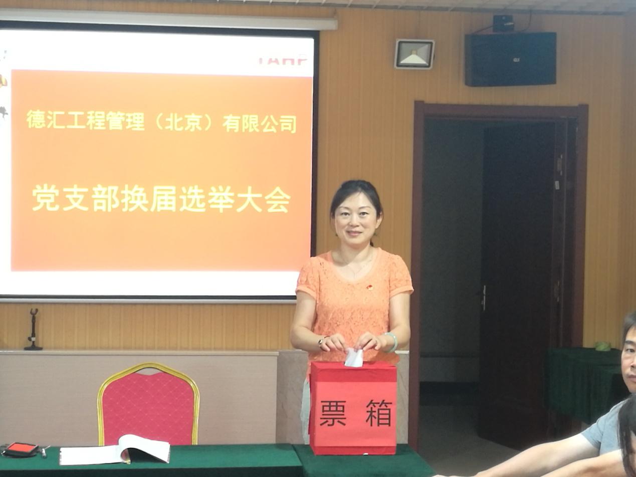 9月15日下午16:00,德匯公司黨支部委員會根據2017年9月11日的批復,組織召開黨支部大會進行了換屆選舉。應到黨員9名(其中有表決權的正式黨員9名),實到8名(其中有表決權的正式黨員8名),占黨員總數的89%,1人因事缺席。