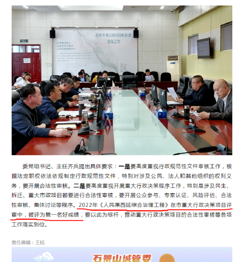 近日,在市級(jí)重大行政決策項(xiàng)目評(píng)審中,由石景山區(qū)城市管理委員會(huì)負(fù)責(zé)實(shí)施的人民渠西延工程項(xiàng)目,最終在市級(jí)評(píng)審結(jié)果中取得第一名的好成績(jī),并被立為重大決策事項(xiàng)標(biāo)桿項(xiàng)目。