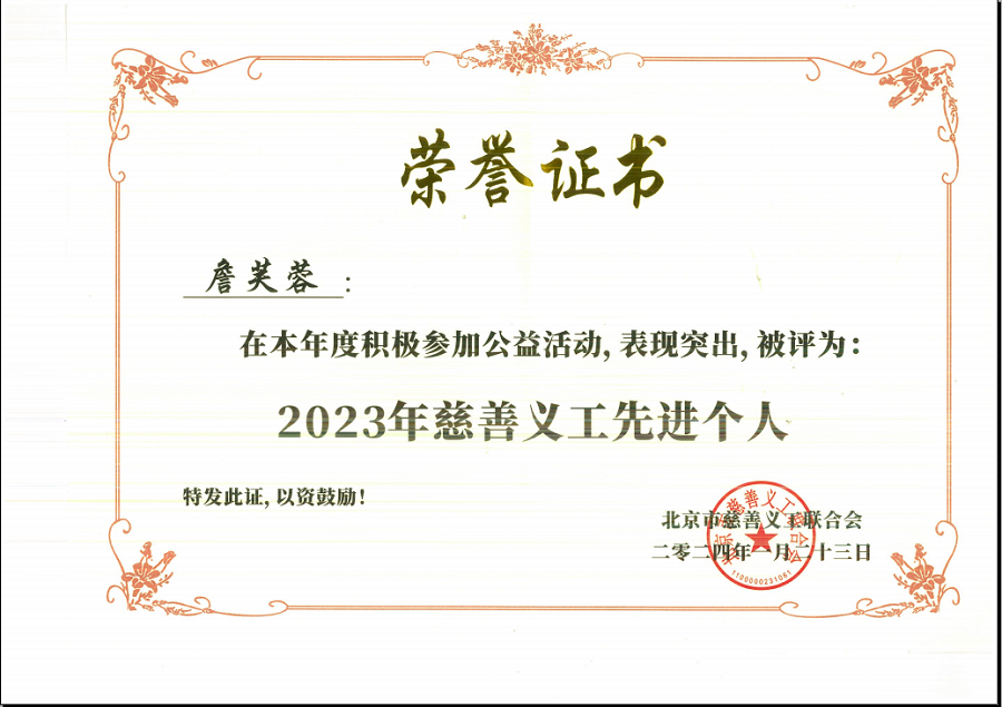 2024年1月23日,集團董事長詹芙蓉應邀參加“凝聚慈善力量 傳遞義工精神”北京市慈善義工聯(lián)合會第十一屆慈善義工風采展示會。