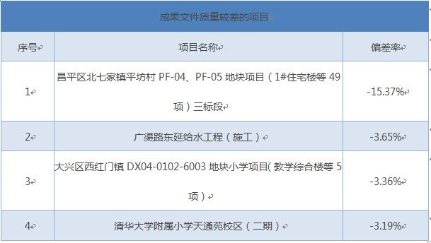 抽查中成果文件質(zhì)量較差、偏差較大的典型項目詳見下表: