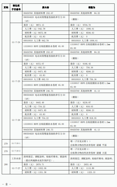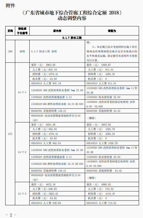 《建筑與市政工程防水通用規(guī)范》GB55030-2022(以下簡稱為“防水通用規(guī)范”)已頒布實施,根據(jù)新舊防水規(guī)范之間的差異,我站組織專家調(diào)整了《廣東省城市地下綜合管廊工程綜合定額 2018》防水項目相關(guān)內(nèi)容,現(xiàn)印發(fā)你們。所調(diào)整內(nèi)容與我省現(xiàn)行工程計價依據(jù)配套使用,除合同另有約定外,已經(jīng)合同雙方確認的工程造價成果文件不作調(diào)整。執(zhí)行中遇到的問題,請通過“廣東省工程造價信息化平臺——建設(shè)工程定額動態(tài)管理系統(tǒng)”及時反映。