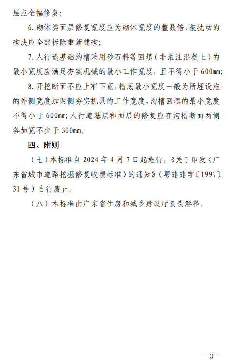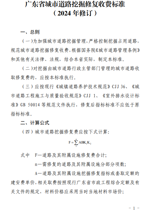 廣東省住房和城鄉(xiāng)建設(shè)廳關(guān)于印發(fā)《廣東省城市道路挖掘修復(fù)收費標(biāo)準(zhǔn)(2024年修訂)》的通知