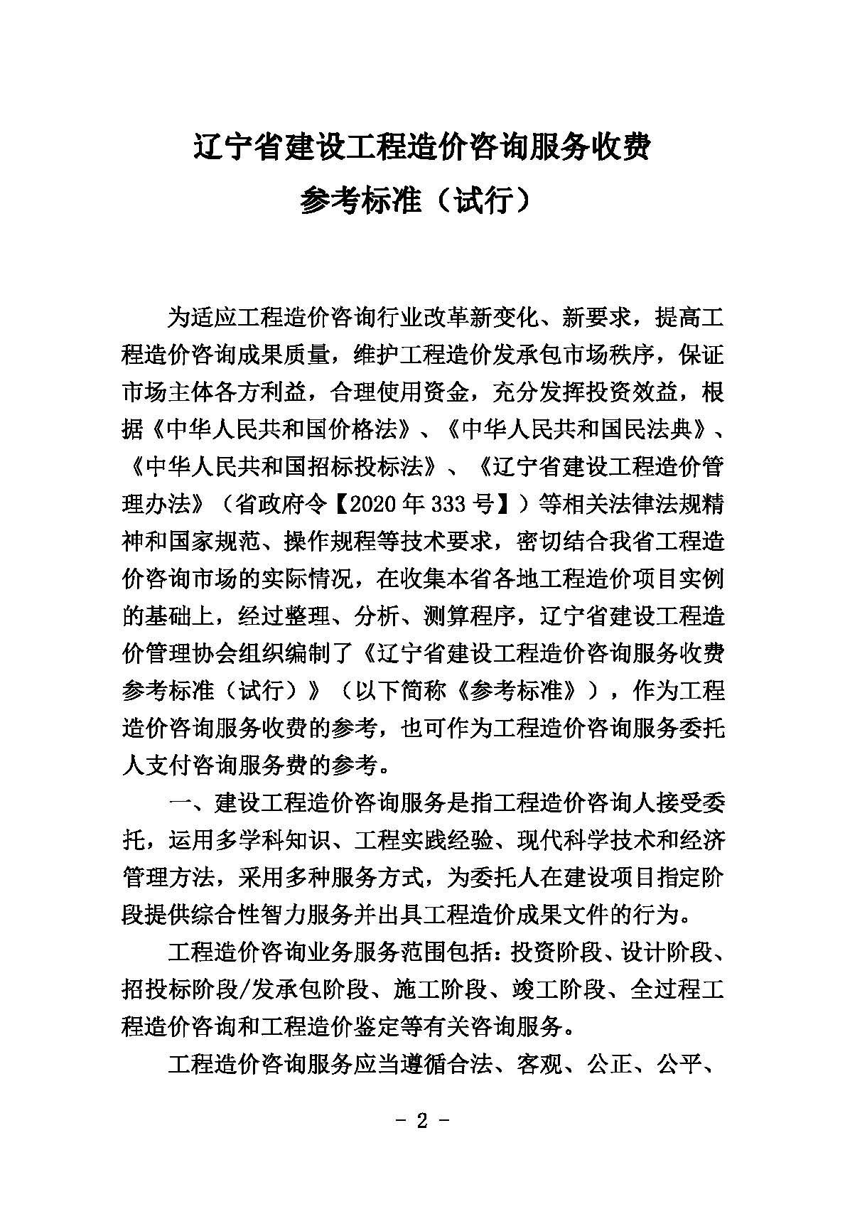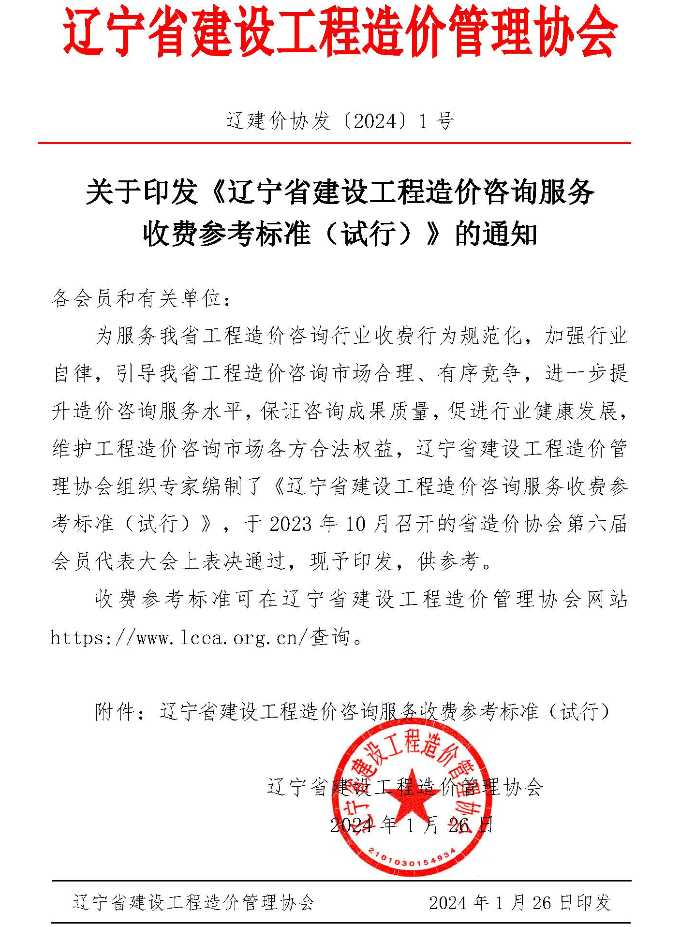 遼寧省建設(shè)工程造價(jià)管理協(xié)會(huì)《關(guān)于印發(fā)<遼寧省建設(shè)工程造價(jià)咨詢服務(wù)收費(fèi)參考標(biāo)準(zhǔn)(試行)>的通知》(遼建價(jià)協(xié)發(fā)(2024)1號(hào))