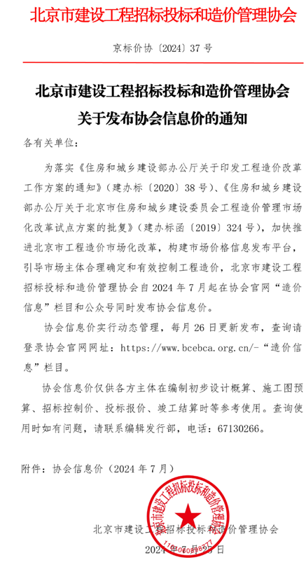 北京市建設(shè)工程招標(biāo)投標(biāo)和造價管理協(xié)會《關(guān)于發(fā)布協(xié)會信息價的通知》