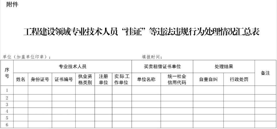 附件:工程建設(shè)領(lǐng)域?qū)I(yè)技術(shù)人員“掛證”等違法違規(guī)行為處理情況匯總表