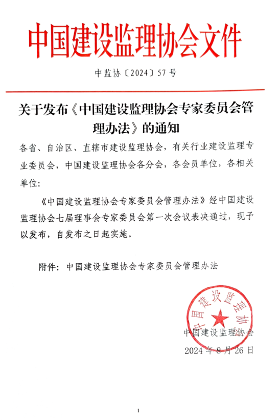 中國建設監(jiān)理協(xié)會關于發(fā)布《中國建設監(jiān)理協(xié)會專家委員會管理辦法》的通知