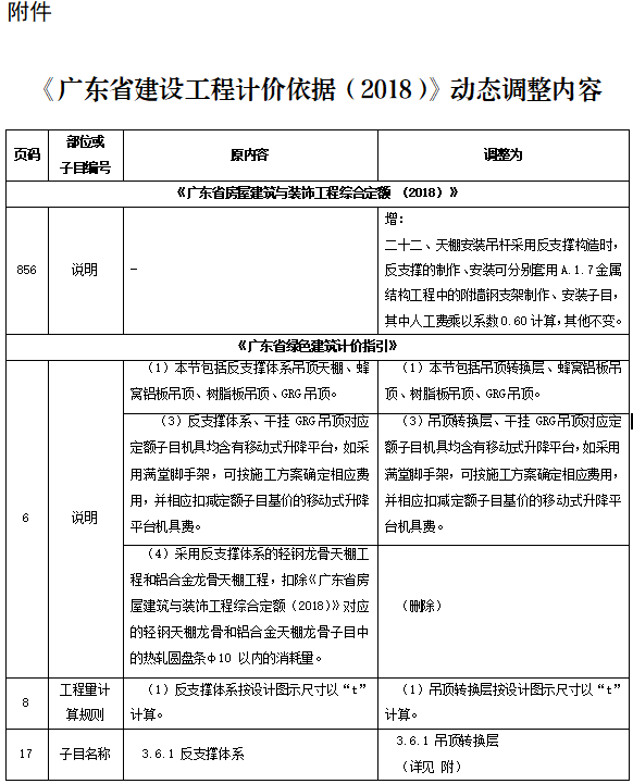 近期,我站組織專家研析了廣東省建設工程定額動態(tài)管理系統收集的反饋意見,現將《廣東省房屋建筑與裝飾工程綜合定額 (2018)》天棚工程、《廣東省綠色建筑計價指引》吊頂轉換層調整內容印發(fā)給你們,請遵照執(zhí)行。