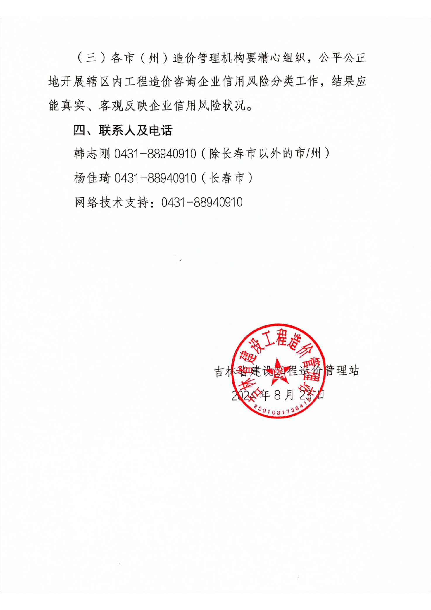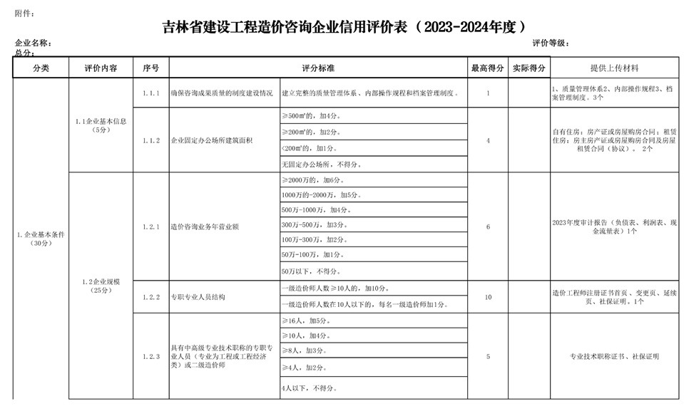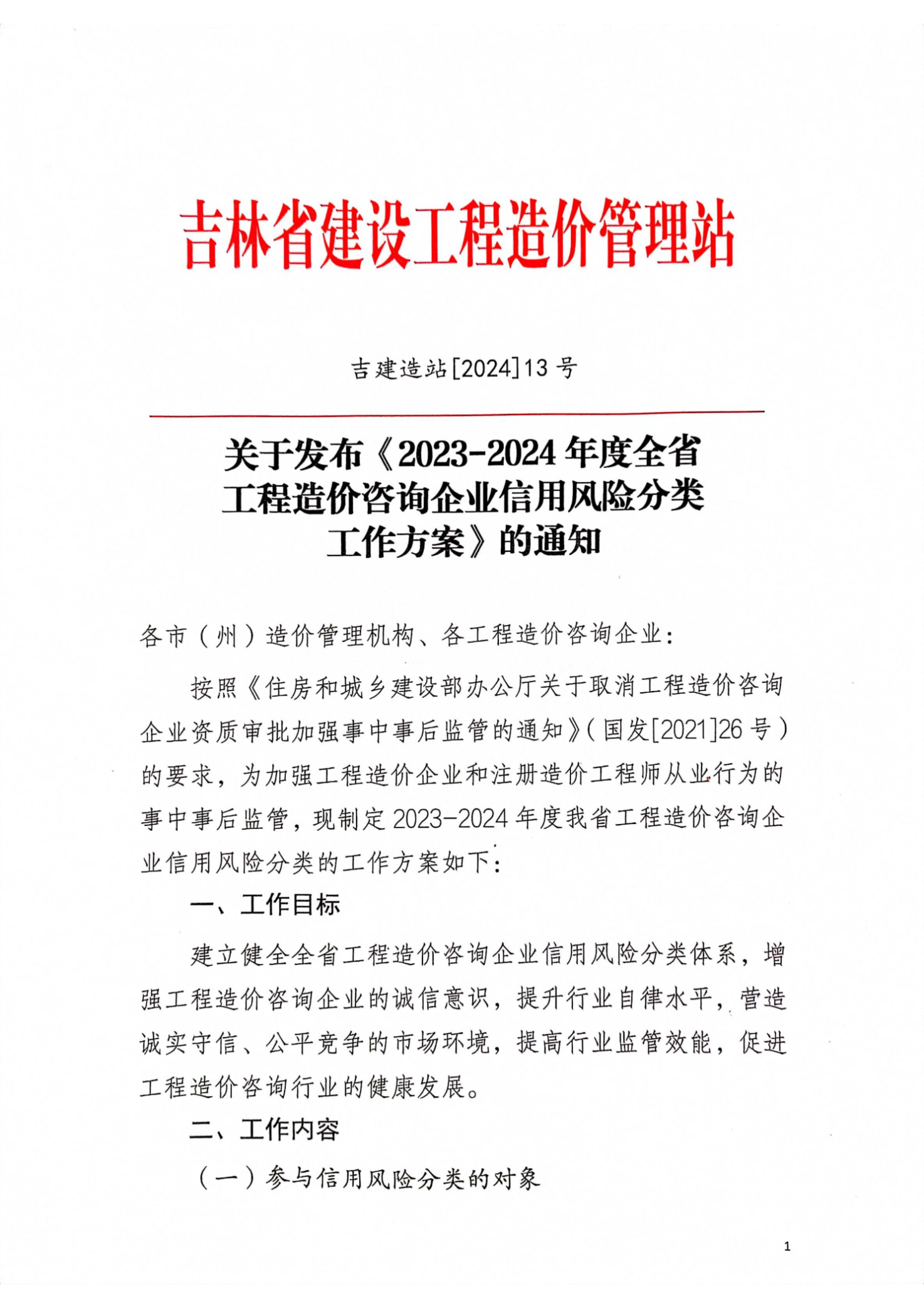吉林省建設(shè)工程造價(jià)管理站關(guān)于發(fā)布《2023-2024年度全省工程造價(jià)咨詢企業(yè)信用風(fēng)險(xiǎn)分類工作方案》的通知