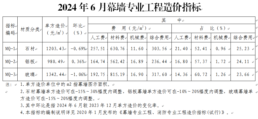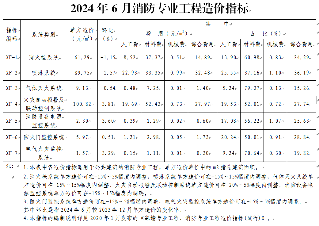 北京市住房和城鄉(xiāng)建設委員會發(fā)布《2024年6月幕墻專業(yè)工程、消防專業(yè)工程造價指標》