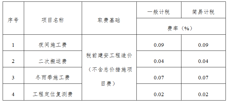 調(diào)整“2020定額”其他總價措施項目費計取標準中的取費基礎和費率,如下表所示: