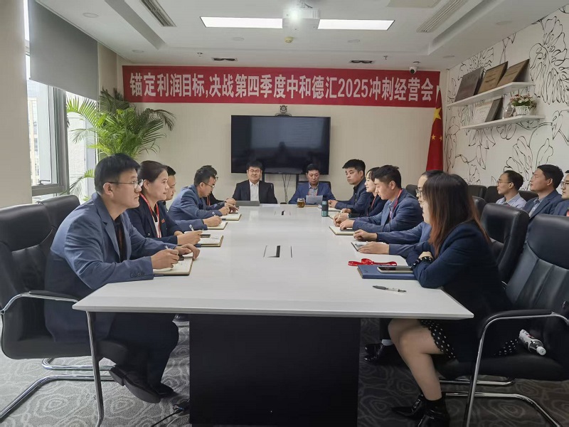 戰(zhàn)鼓催征,使命在肩。為全面總結(jié)前三季度經(jīng)營成果,深入分析當(dāng)前形勢,精準(zhǔn)部署第四季度沖刺工作,確保公司年度戰(zhàn)略目標(biāo)圓滿達(dá)成,2025年10月11日下午,中和德匯在公司大會議室隆重召開了以“錨定利潤目標(biāo)、決戰(zhàn)第四季度”為主題的經(jīng)營沖刺會。公司各業(yè)務(wù)部門經(jīng)理及副總以上領(lǐng)導(dǎo)齊聚一堂,共同吹響了決勝全年經(jīng)營目標(biāo)的“沖鋒號”。